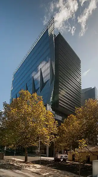 A variety of passive systems, such as appropriate orientation of inhabited spaces, daylight maximisation and facade screening, have been used in conjunction with active systems such as energy efficient lighting, water efficient fittings, rainwater collection and greywater recycling.[7][9] The building also utilises tri-generation power for electricity, cooling and hot water heating.[1][8][10]