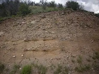 The formation consists of volcaniclastic sand and gravel eroded off exposures of the Keres Group of the southern Jemez Mountains.[1] The formation is restricted to sedimentary strata composed purely of volcaniclastic sediments that overlie Keres Group volcanic rocks and Keres-age volcanic sediments south of the Jemez Mountain, and which in turn are in turn overlain by Pliocene and early Pleistocene gravels.