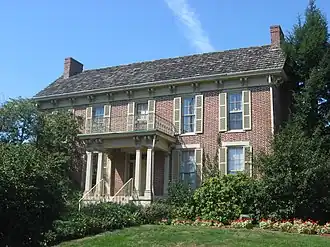 Cochran–Helton–Lindley House, also known as the Helton–Lindley House and James Cochran House, is a historic home located at Bloomington, Monroe County, Indiana. It was built in 1849–1850, and is a two-story, five-bay, L-shaped, Greek Revival style brick dwelling. It has a two-story rear ell with an enclosed two-story porch. Its main entrance is framed by a transom and sidelights and features a porch with square columns and pilasters. It was the home of Indiana Governor Paris Dunning in 1869–1870. The house was renovated in 1976.[2]: 2–4
