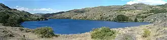 The Pueyrredón/Cochrane Lake is a glacier fed lake located on the eastern edge of the southern Andes, straddling the border between Argentina and Chile. It is named after Lord Cochrane on the Chilean side and Juan Martín de Pueyrredón on the Argentina side. The border is a peninsula that juts out into the lake on the north side. The border to the north of the lake follows the ridgeline of the last major expression of the eastern Andes. The Argentine portion of the lake has a surface of 150 km2 (58 sq mi), while the portion in Chile covers 175 km2 (68 sq mi).[1]