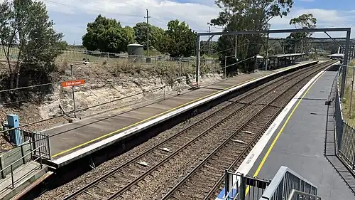 ![]() Southbound view of the station platforms from the Lake Road overpass, November 2023 | |||||||||||