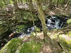 Codfish Falls is a series of close-knit plunges and cascades, ending in a fan, that is fed by Fishers Brook, in Storrs, Connecticut (a village in the town of Mansfield).[1] It can be accessed by a trail from a road of the same name. The falls has carved out a steep-sided gorge, averaging twenty feet deep, which is in sharp contrast to the surrounding land. It feeds into the nearby Fenton River.