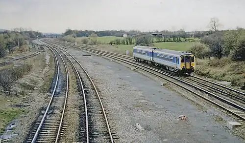 ![]() A Class 156 near the site of the station in 1989 | |||||