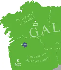 The main city of the Coelerni was Coeliobriga, now Castromao in Celanova[4] (Ourense, Galicia, Spain). This Castro was inhabited from the 6th century BC until the beginning of the 4th century CE.