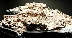 Excavations of the Ghost Ranch Coelophysis quarry were continued throughout 1947 and 1948 by the crew of the AMNH, which also included Carl Sorensen after arrival from New York City, assisted by the landowners Arthur and Phoebe Pack and farm hand Herman Hall. Seven large blocks were excavated, each containing numerous skeletons, numbered I to VI for identification of location when transported back to the AMNH. Around 105 smaller blocks were also collected, created by the channels excavated to separate the larger blocks. A further 6 blocks, VII to XIII, were excavated as the quarry expanded to several meters in diameter, with the blocks being distributed amongst the AMNH, Museum of Northern Arizona, New Mexico Museum of Natural History, and Yale Peabody Museum.[16] All of the excavations at Ghost Ranch took place within the upper sandstone level of the Chinle Formation, believed to be Norian in age at the time and making the expanse of Coelophysis one of the longest deposits within the Chinle despite being one of the earliest known dinosaurs. Colbert believed that the original material of Coelophysis may have been collected from the surface in a similar method to Whitaker's discovery, as part of the same fossil layer that was excavated by the AMNH.[10][17]