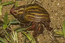They are the only known terrestrial hermit crab species on the Atlantic coast of western Africa.[2][3] They were first described by the German zoologist Richard Greeff in the West African islands of São Tomé and Rolas, after initially being misidentified as Coenobita rugosus.[2] They are able to venture far inland, in altitudes exceeding 800 m (2,600 ft). In spite of this, the ovigerous females must release the fertilized eggs in the ocean for the larvae to develop (as with all known species of terrestrial hermit crabs).[3]