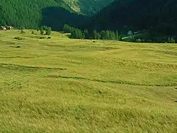 A large meadow, known as the St Ursus Meadow (It. Prati di Sant'Orso; Fr. Prés de Saint-Ours), is located at the southern edge of the town center (webcam); the municipal statute forbids any construction works on this meadow, which has received recognition as a "Wonder of Italy".[4][5]