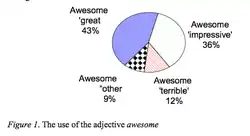 Logistic regression analysis evidences the use of awesome 'great' can be modeled from the age and gender of speakers, with age having a more significant overall effect than gender; awesome 'impressive' can be modeled from age, gender and potentially their living environment; no prediction can be made regarding the overall effect of external factors on the use of the meaning 'terrible'.