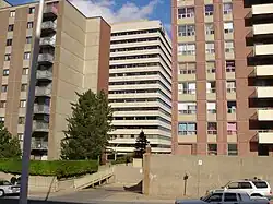 Cogswell Tower is part of the Scotia Square Complex in downtown Halifax, Nova Scotia. It is used for office and commercial space and stands at 79 metres (259 ft) with 14 floors, plus levels G, P1, P2, P3, P4, P5, P6 (bottom to top) underneath, which are part of the parkade on which Cogswell Tower sits. G level is ground level for Barrington Street and connects to the lobby of the Delta Halifax, P1 enters into Scotia Square, and P3 level is ground level for Albemarle (formerly Market) Street. The building is connected to the Downtown Halifax Link system.