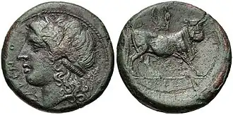 The coinage of Cales concerns coins minted in Cales, a city in Campania, the most important urban center of the ancient Italic population of the Ausones.[1] Cales was located on the Via Latina, halfway between the mountains of Samnium and the plains of Campania felix, a few kilometers north of Casilinum (present-day Capua) and just south of Teanum Sidicinum.
