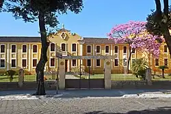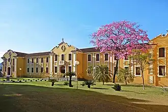 The interior of the school houses a chapel, where some of the masses of the Saint Sebastian Parish were held. Until the conclusion of the Saint Sebastian Cathedral, the schoolyard was used for the celebration of the parish masses when there was a larger public expectation,[25] as well as parties, balls, and sports competitions in the city.[26] Two sports courts serve the physical education classes.[27] A series of physical assets inventoried by the municipality are also located inside Colégio Angélica, among which are the images of Our Lady of Mount Carmel, located in the hall and courtyard, and of Saint Joseph in the school hall.[28] Among the events that are held there are the Coronation of Mary, which happens every year in the school's chapel in May,[29] and the June Festival.[30] The name of the neighborhood Nossa Senhora do Carmo, popularly known as Morro do Carmo, pays homage to the Carmelite Sisters, who were responsible for the consolidation of the school.[31]