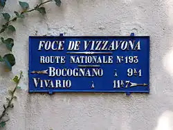 Col de Vizzavona is located between the two major peaks on Corsica: the Monte d'Oro (altitude 2,389 m (7,838 ft)), 3 km north-northwest, and the Monte Renoso (2,352 m (7,717 ft)), 6 km south-southeast. The pass, located in the Regional Natural Park of Corsica, is traversed by the RN193 road and connects the Vecchio Valley with the Gravona river and with the Gulf of Ajaccio.[1]