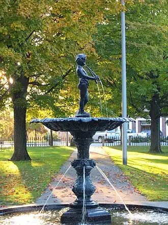 Lebanon's central business district was struck by devastating fire in 1887, in which more than 80 buildings were destroyed. This did not directly affect the area around the park, but Lebanon's population continued to grow, and the business district expanded, resulting in the relocation of houses around the park, and the construction of a number of Victorian buildings around its perimeter. After the 1923 destruction by fire of the town hall, the area acquired a somewhat unified late-19th to early-20th century commercial and civic architecture.[2]