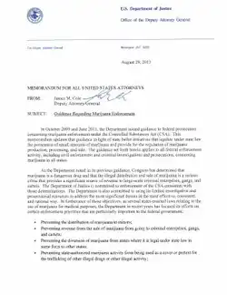 - ^ Memorandum for All United States Attorneys: Guidance Regarding Federal Marijuana Enforcement, Office of the Deputy Attorney General (August 29, 2013).