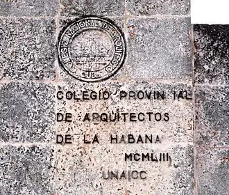 - ^ "COLEGIO NACIONAL DE ARQUITECTOS DE CUBA". Retrieved October 1, 2018.