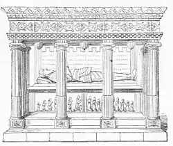 Following his death in 1568 Sir John's huge, canopied tomb stands in the Norman porch of the Church of St Laurence, which itself is a Grade II* listed building,[21] parts of which date from the 12th century. Two stiles in the churchyard are also listed.[22][23]