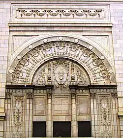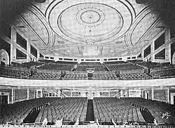 Built in 1920 as B.S. Moss' Coliseum Theatre, the venue was originally a movie palace designed by architect Eugene De Rosa.[4] Marble interiors were done by Voska, Foelsch, & Sidlo Inc, terra cotta by New York Architectural Terra-Cotta Company, ornamental plastering by Architectural Plastering Company, Inc., Peter Clark installed the rigging system, windows supplied by S. H. Pomeroy Company, Inc., Sexauer & Lemke Inc. installed the ornamental iron work, draperies and wall coverings by Louis Kuhn Studio, mirrors & console tables by Nonnenbacher & Co, and the pipe organ was installed by M. P. Moller.[5]