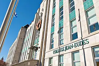 Collège Jean-Eudes is a private French-language high school in Montreal, Quebec, Canada, established in 1953 by the Eudists brotherhood. It is located on Rosemont Boulevard at 15th Avenue in the Montreal borough of Rosemont–La Petite-Patrie. Collège Jean-Eudes is considered to be one of the best schools in Quebec as ranked by the Fraser Institute.[1][2][3] College Jean-Eudes was one of the first schools to instigate the use of the iPad in class during the autumn of 2012.[4][5] Students must wear uniforms.