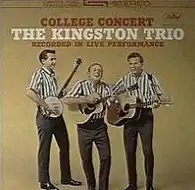 College Concert is the twelfth album by the American folk music group the Kingston Trio, released in 1962 (see 1962 in music). It was the group's third live release and the first live release with new member John Stewart. College Concert peaked at number three on the Billboard charts and was the largest-selling release by the Stewart-years Trio.[1]