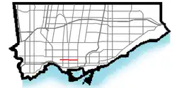 | Major junctions | Dufferin Street Ossington Avenue Bathurst Street Spadina Avenue University Avenue | ||||||