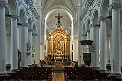 The Collegiate Church of St. Bartholomew (French: Collégiale Saint-Barthélemy) is a Roman Catholic collegiate church in Liège, Belgium.[1] Founded outside the city walls, it was built in coal sandstone, starting in the late 11th century (the chancel) and lasting until the late 12th century (the massive westwork, with its twin towers which were reconstructed in 1876). It underwent, like most ancient religious buildings, modifications through the centuries. Nevertheless, the Meuse RomanesqueOttonian architecture character of its architecture remained deeply rooted. The 18th century saw the addition of two more aisles, the opening of a neoclassical portal in the walls of the westwork, and the French Baroque redecoration of the interior. The interior of the western section has recently been restored back to the original style.