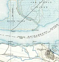 Collinsville is a rural unincorporated community in Solano County, California, United States. It is located at the mouth of the Sacramento River, on the north side of the river where it debouches into the Suisun Bay.[1] Collinsville is effectively separated from the more intense urban development in Contra Costa County immediately across the river, as no bridge exists connecting the two areas. The area was once a proposed spot for a major chemical plant for the Dow Chemical Company in the 1980s; though nothing of the sort materialized.[2] The community is in ZIP code 94585 and area code 707.