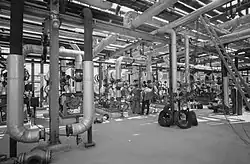 The total storage capacity of the refinery and loading station was 760,000 cubic metres (27,000,000 cu ft), distributed across 90 tanks connected by a pipeline network to two pumping stations within the refinery and one at the loading station.[4]
