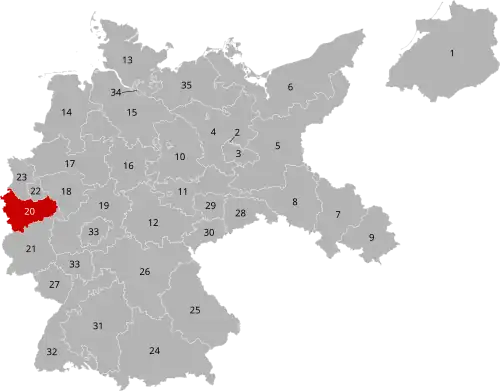 It comprised the Regierungsbezirke of Cologne and Aachen from the Rhine Province within the Free State of Prussia. It was constituency 20 in the numbering scheme.[1]