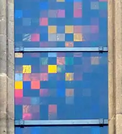 The Cologne Cathedral Window is the stained glass window in the south transept of the Cologne Cathedral designed by Cologne artist Gerhard Richter. On a surface of 106 square metres, 11,263 glass squares in 72 colours of 9,6 cm × 9.6 cm were principally arranged randomly, with others selected in response to architectural context.[1] The window was inaugurated on 25 August 2007 as part of a Eucharistic celebration; the abstract execution was both celebrated and strongly criticized.