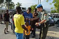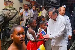 Prior to the 2010 Haiti earthquake, Colombia played a role in several projects and had police presence in the MINUSTAH (the United Nations Stabilisation Mission in Haiti). Following the aftermath of the earthquake, Colombia has sent important amounts of humanitarian aid, ships, experts and infrastructure to Haiti to assist with reconstruction.[3] In 2024, Colombian president Gustavo Petro was expected to visit Haiti, but was unable to visit the country due to the security situation.[6] On April of that year, Consul General of Colombia, Vilma Velásquez met with ten Haitian entrepreneurs who expressed in exploring the Colombia market for trade purposes.[7]