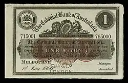 - ^ "NEW COLONIAL BANK OF AUSTRALASIA". The Argus (Melbourne). No. 10, 455. Victoria, Australia. 20 December 1879. p. 8. Retrieved 12 August 2021 – via National Library of Australia.