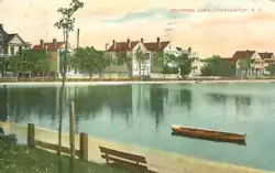 "Gala Week" used to be held in the fall of the year, with a fireworks display on the west side of the Pond,[8] which was then an undeveloped area. Spectators filled to park and crowded onto boats in the lake.[9] Boats were a popular feature of Colonial Lake, and the city even began requiring licenses for them to maintain order on the pond in 1910.[10] Starting that same year, a series of boat and "tub" races were staged in the lake for local boys with money awarded to the winners.[11] For a time, the lake was closed off from the Ashley River with a wire screen and stocked with fish for recreational fishing.[12]