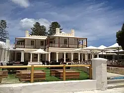 The Residence was converted to holiday accommodation in 1919 and in 1953 it opened as a hotel with a liquor licence.[4][5] It has been known variously as the "Rottnest Hotel", "Quokka Arms"[6] and as of 2015 "Hotel Rottnest".