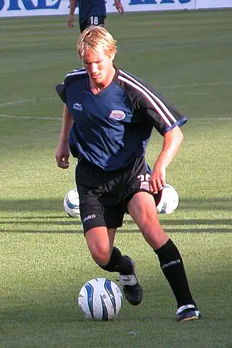 The 2009 campaign featured head coach Gary Smith in his first full season.[10] Smith's first appointment was ex-England international Steve Guppy as his assistant; Guppy had spent the previous season at USL-1 team Rochester Rhinos as their player assistant coach. Shortly after, Rapids veteran midfielder Pablo Mastroeni re-signed with the club for four years after mulling potential offers from Europe.[10] The Rapids also signed new four-year contracts with midfielders Colin Clark and Nick LaBrocca and defenders Jordan Harvey and Kosuke Kimura.[11] The Colorado Rapids acquired former QPR and Chicago Fire goalkeeper Matt Pickens to replace Senegalese goalkeeper Bouna Coundoul. The other major roster move included the arrival of Iván Guerrero from D.C. United in exchange for midfielder Christian Gomez and backup goalkeeper Mike Graczyk.[12] The media criticized the Rapids for not making more roster changes for the 2009 season. However, the core of the team remained intact.[13]