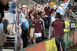 For the 2018 season, the Rapids hired former New Zealand coach Anthony Hudson.[23] The Rapids made many additions, including wingback Edgar Castillo and midfielder Jack Price while switching to Hudson's preferred 3–5–2 formation.[24] The season began with the Rapids being eliminated from the 2018 CONCACAF Champions League by Toronto FC, a tournament they had qualified for on the strength of the 2016 campaign.[25] The middle of the 2018 saw another major trade with 2017's leading goalscorer Dominique Badji being traded to FC Dallas for Kellyn Acosta.[26] Despite the changes in the 2018 season, it ended with another 10th place Western Conference finish, with the Rapids accruing 8 wins, 19 losses and 7 draws.[27]