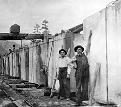 Wages became a source of conflict during this period. In 1909, daily wages ranged from $5 to $8 but no overtime pay was provided. During the 1930s Great Depression, they earned 40 cents an hour. A strike lasting three months started at the mill on 4 August 1909, and by the next day quarry workers started to join. The strikers were demanding an 8-hour day, time-and-a-half for overtime, and double time on Sunday. The company management quickly won the support of the public. By September, only 20 men were working at the mill and even fewer at the quarry. The strike lasted until 2 November with the workers going back to work at reduced wages. Full operations were resumed within a week.[3][5]