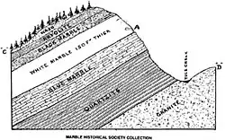 - ^ Gaskill, D.L. and Godwin, L.H., 1966, Geologic map of the Marble quadrangle, Gunnison and Pitkin Counties, Colorado: U.S. Geological Survey, Geologic Quadrangle Map GQ-512, scale 1:24000 [1]