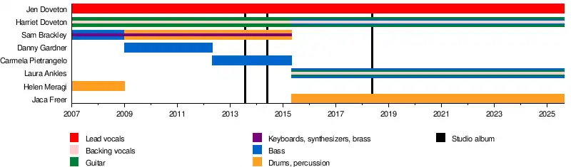 - Jen Doveton – lead vocals, melodica (2007–present)
