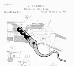 The Colt-Burgess rifle, also known as the 1883 Burgess rifle or simply the Burgess rifle, is a lever-action repeating rifle produced by Colt's Patent Firearms Manufacturing Company between 1883 and 1885. The Burgess rifle was Colt's only entrance into the lever-action rifle market, produced to compete with Winchester Repeating Arms Company's line of popular rifles.[2][3] The 1883 Burgess rifle was designed and patented by Andrew Burgess, an American firearms designer and photographer, who sold the design to Colt.[4][5]
