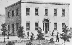 The school's new building burned soon after it opened, on November 20, in what was believed to be arson.[1] Two-days later classes resumed at a rented home while plans were made to re-build.[1] Within two-years enrollment grew to 150 students and a new building was finished.[1][3] Classes were primarily preparatory classes during the existence of the college.[1] The second structure completed in November 1857 was meant to be temporary, and it was, as it burned on February 26, 1858.[1] Columbia tried to rebuild again, this time building a two-story building faced with sandstone.[1] However, the new structure was not finished before the college closed.[1]