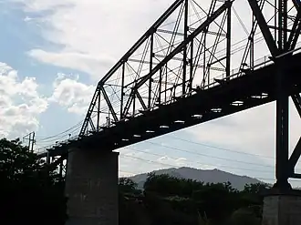 The bridge was replaced in 1950 by the Senator George Sellar Bridge. The next year the Wenatchee Reclamation District bought the bridge for $1.00, moving the pipes from outside the truss to within. The bridge was opened to foot traffic.[4] In 2007 concerns were raised about the bridge's ability to sustain foot traffic.[5] Repairs were made in 2010.[6]