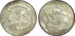 In 1935, to celebrate the sesquicentennial of the city, the United States Mint issued the Hudson Half Dollar. The coin is one of the rarest ever minted by the United States Government, as only 10,008 coins were struck. On the front of the coin is an image of Henry Hudson's ship the Half Moon, and on the reverse is the seal of the city. Local legend has it that coin was minted on direct order of President Franklin Delano Roosevelt to thank the Hudson City Democratic Committee for being the first to endorse him for state senator and governor.