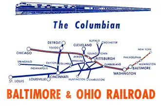 The Columbian was a named passenger train operated by the Baltimore and Ohio Railroad. It was the all-coach supplemental train of the all-Pullman Capitol Limited. It operated from 1931 to 1964. The train's initial route was between Jersey City, New Jersey and Washington, D.C., but in 1941 the Columbian route was lengthened to Jersey City – Chicago, Illinois. It was the first air-conditioned train in the United States.