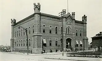 The Columbus City Prison was a municipal prison in Downtown Columbus, Ohio. The building was constructed in 1879 in a castle-like style, designed by architect George H. Maetzel. The building served as a prison and headquarters of the Columbus Police Department until a fire demolished the structure in 1920.