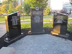 The Columbus Firefighters Memorial, or Firefighters' Memorial,[1] is a monument commemorating firefighters who died while serving by Ed Nothaker, installed in Columbus, Ohio's Battelle Riverfront Park, in the United States. It was erected in 1958 and features an eternal flame on top of Greek columns.[2]
