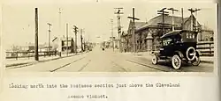 The site's carhouse and inspection shop were adjoining structures at the southeast corner of Cleveland and Reynolds Avenues. The carhouse was the largest of five in the streetcar system, and about a third of the streetcar staff were employed there in 1918.[8] It measured 88 by 360 ft., and was made of brick with a steel roof and concrete floor.[9]