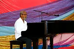 Young has a stated interest in promoting the development of Belizean music.[15] Young has actively contributed to efforts in Belizean schools to maintain music as an educational staple.[14] Young's son, Colville Young Jr., is the director of the Belize National Youth Symphony. Currently Colville Young is working with founders of the Belize Virtuosi Orchestra, Joel Nagel and Peter Illavsky,[16] to raise funds to build a chamber orchestra auditorium in Belize.[17] Young established the Governor General's Music in the Schools Programme which works with partner abroad to expand music in schools and access to musical instruments.[18]