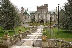 One of Colwood's best known landmarks is Hatley Castle, now home to Royal Roads University. It is a Scottish Baronial mansion and grounds originally built as a residence for James Dunsmuir, Premier and later Lieutenant Governor of British Columbia. Colwood almost became the seat of the Crown of the Commonwealth realm in 1940, when, after the start of World War II, the government planned to relocate King George VI, Queen Elizabeth, and their children, Princesses Elizabeth and Margaret, to the castle for protection.[11] But they decided to stay in London and Windsor, near the European front. The government transferred the estate to the Canadian Armed Forces. It adapted the site for use as Royal Roads Military College, a naval training facility from 1941-mid-1990s. The military college was closed in the 1990s, and the estate is now the campus of the public Royal Roads University, which opened in 1995. The original residence is surrounded by extensive formal gardens, including a featured Japanese garden.