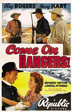 Come On, Rangers is a 1938 American Western musical film directed by Joseph Kane and starring Roy Rogers.
