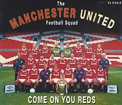 "Come on You Reds" is a song recorded by the 1994 Manchester United football squad, written and produced by the rock group Status Quo. It first entered the UK Singles Chart on 30 April 1994 and remained there for a total of 15 weeks, reaching a two-week peak of number one. The song is the only (as of 2024) club side football single to reach number one on the UK chart; however, "Back Home" (in 1970) and "World in Motion" (in 1990) both topped the charts for the England national side.[2] The song also reached number one in Denmark and became a top-10 hit in Ireland and Norway.